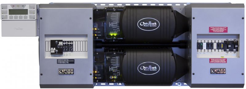 FLEXpower TWO includes two VFXR3024E inverter/charger, AC and DC wiring boxes, a MATE3, HUB10, and Surge Protector with optional kits for charge controllers and DC system monitoring, while maintaining a small system footprint.