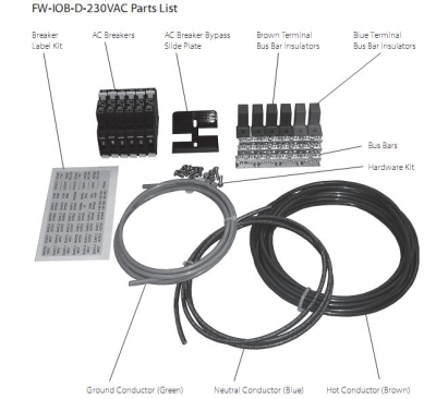 Product No. I1331 Includes: Six 30A 230VAC single pole DIN mount breakers, sliding bypass interlock plate, wire and hardware kit System Rating Single-Phase 230VAC 60A 13.8kW Bypass Breaker Two Poles @ 30A 13.8kW Input Breaker Two Poles @ 30A 13.8kW Output Breaker Two Poles @ 30A 13.8kW -