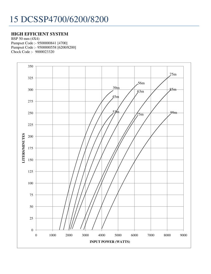 (A) Input Power (Watt) [hidden] [hidden] [hidden] [hidden] [hidden] [hidden] 4700 4000 3200 2800 2000 1700 1500 Head (m) Flow in LPM [hidden] [hidden] [hidden] [hidden] [hidden] [hidden] 53 250 215 155 110 0 45 285 245 185 155 55 0 39 304 265 215 185 100 50 0 (B) Input Power (Watt) [hidden] [hidden] [hidden] [hidden] [hidden] [hidden] 6200 5300 4600 3900 2900 2200 2100 Head (m) Flow in LPM [hidden] [hidden] [hidden] [hidden] [hidden] [hidden] 75 250 195 145 95 0 63 295 245 195 156 70 0 56 315 268 236 195 109 40 0 (C) Input Power (Watt) [hidden] [hidden] [hidden] [hidden] [hidden] [hidden] 8200 7200 6200 5200 4000 3400 2900 Head (m) Flow in LPM [hidden] [hidden] [hidden] [hidden] [hidden] [hidden] 99 250 205 155 100 0 85 301 256 208 150 75 0 75 332 295 250 195 115 65 0 2 year warranty