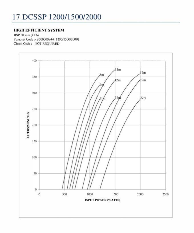 (A) Input Power (Watt) [hidden] [hidden] [hidden] [hidden] [hidden] [hidden] 1200 1000 800 700 650 550 450 Head (m) Flow in LPM [hidden] [hidden] [hidden] [hidden] [hidden] [hidden] 11 283 205 135 70 0 9 325 270 192 130 99 0 8 360 285 225 196 110 80 0 (B) Input Power (Watt) [hidden] [hidden] [hidden] [hidden] [hidden] [hidden] 1500 1200 1100 1000 850 700 650 Head (m) Flow in LPM [hidden] [hidden] [hidden] [hidden] [hidden] [hidden] 14 283 226 160 108 0 12 340 270 201 180 110 0 11 355 280 240 215 140 99 0 (C) Input Power (Watt) [hidden] [hidden] [hidden] [hidden] [hidden] [hidden] 2000 1800 1600 1400 1200 1000 800 Head (m) Flow in LPM [hidden] [hidden] [hidden] [hidden] [hidden] [hidden] 22 283 230 203 140 0 19 345 295 262 200 100 0 17 357 325 312 243 162 102 0 2 year warranty