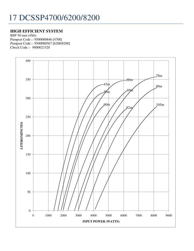 (A) Input Power (Watt) [hidden] [hidden] [hidden] [hidden] [hidden] [hidden] 4700 4000 3200 2800 2000 1600 1300 Head (m) Flow in LPM [hidden] [hidden] [hidden] [hidden] [hidden] [hidden] 60 283 240 171 130 0 50 320 280 225 195 88 0 43 341 302 259 215 135 90 0 (B) Input Power (Watt) [hidden] [hidden] [hidden] [hidden] [hidden] [hidden] 6200 5300 4600 3900 3000 2300 1900 Head (m) Flow in LPM [hidden] [hidden] [hidden] [hidden] [hidden] [hidden] 82 283 230 169 119 0 69 320 279 238 175 103 0 60 351 315 272 223 148 80 0 (C) Input Power (Watt) [hidden] [hidden] [hidden] [hidden] [hidden] [hidden] 8200 7200 6200 5200 4100 3200 2700 Head (m) Flow in LPM [hidden] [hidden] [hidden] [hidden] [hidden] [hidden] 105 281 230 173 110 0 89 331 295 250 183 70 0 78 365 326 291 245 161 90 0 2 year warranty