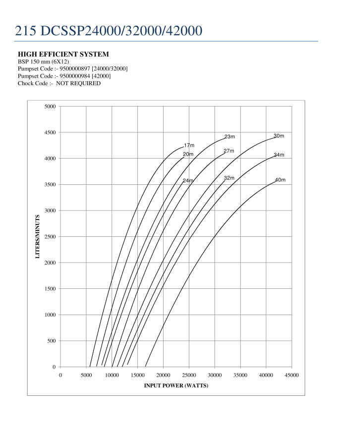 (A) Input Power (Watt) [hidden] [hidden] [hidden] [hidden] [hidden] [hidden] 24000 22000 20000 16000 8500 7000 6000 Head (m) Flow in LPM [hidden] [hidden] [hidden] [hidden] [hidden] [hidden] 24 3584 3250 2900 2100 0 20 4080 3790 3550 2900 1000 0 17 4300 4100 3840 3320 1450 900 0 (B) Input Power (Watt) [hidden] [hidden] [hidden] [hidden] [hidden] [hidden] 32000 28000 24000 20000 12000 10000 8500 Head (m) Flow in LPM [hidden] [hidden] [hidden] [hidden] [hidden] [hidden] 32 3584 3100 2470 1900 0 27 4100 3800 3320 2510 900 0 23 4400 4150 3750 3120 1500 1000 0 (C) Input Power (Watt) [hidden] [hidden] [hidden] [hidden] [hidden] [hidden] 42000 38000 30000 26000 16500 13000 11000 Head (m) Flow in LPM [hidden] [hidden] [hidden] [hidden] [hidden] [hidden] 40 3584 3300 2480 2020 0 34 4100 3800 3120 2600 1000 0 30 4450 4180 3600 3000 1600 800 0 2 year warranty
