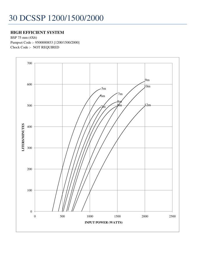 (A) Input Power (Watt) [hidden] [hidden] [hidden] [hidden] [hidden] [hidden] 1200 1000 800 700 500 450 400 Head (m) Flow in LPM [hidden] [hidden] [hidden] [hidden] [hidden] [hidden] 7 500 450 350 230 0 6 560 472 355 245 180 0 5 580 520 435 375 310 200 0 (B) Input Power (Watt) [hidden] [hidden] [hidden] [hidden] [hidden] [hidden] 1500 1200 1100 1000 700 600 550 Head (m) Flow in LPM [hidden] [hidden] [hidden] [hidden] [hidden] [hidden] 9 500 330 307 240 0 8 515 430 350 320 100 0 7 600 500 400 345 220 140 0 (C) Input Power (Watt) [hidden] [hidden] [hidden] [hidden] [hidden] [hidden] 2000 1800 1600 1400 850 700 550 Head (m) Flow in LPM [hidden] [hidden] [hidden] [hidden] [hidden] [hidden] 12 500 442 365 305 0 10 590 526 480 390 156 0 9 620 565 531 476 210 130 0 2 year warranty