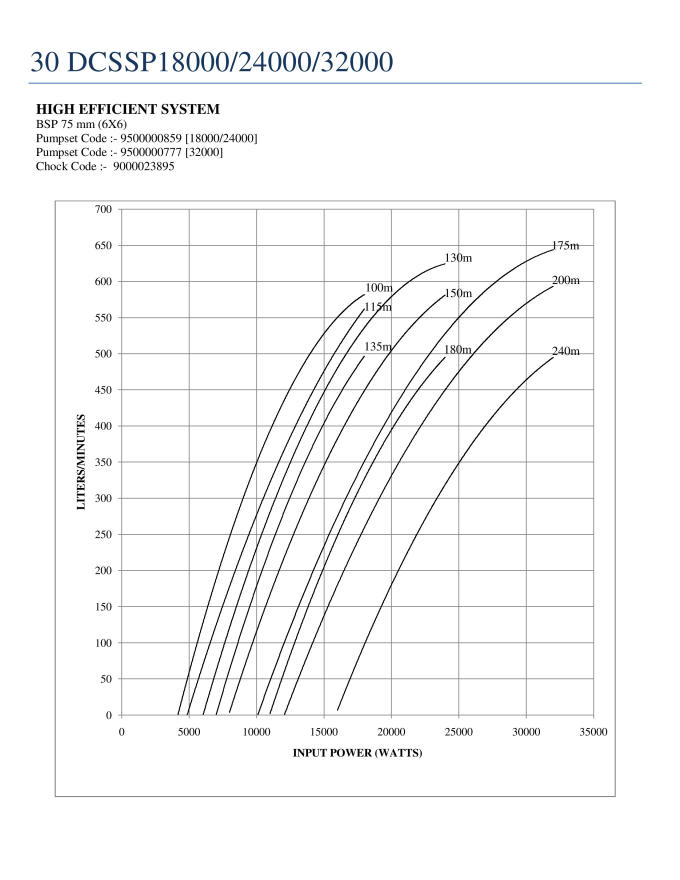 (A) Input Power (Watt) [hidden] [hidden] [hidden] [hidden] [hidden] [hidden] 18000 16000 14000 12000 7000 5500 4500 Head (m) Flow in LPM [hidden] [hidden] [hidden] [hidden] [hidden] [hidden] 135 500 430 370 280 0 115 560 510 440 365 160 0 100 590 545 490 435 210 90 0 (B) Input Power (Watt) [hidden] [hidden] [hidden] [hidden] [hidden] [hidden] 24000 22000 20000 16000 11000 8000 6200 Head (m) Flow in LPM [hidden] [hidden] [hidden] [hidden] [hidden] [hidden] 180 500 445 390 260 0 150 590 540 495 390 210 0 130 630 590 560 470 290 160 0 (C) Input Power (Watt) [hidden] [hidden] [hidden] [hidden] [hidden] [hidden] 32000 28000 24000 20000 16000 12000 10000 Head (m) Flow in LPM [hidden] [hidden] [hidden] [hidden] [hidden] [hidden] 240 500 415 315 230 0 200 600 530 440 340 220 0 175 650 600 515 420 285 150 0 2 year warranty