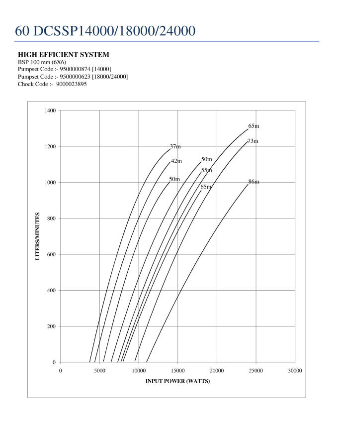 (A) Input Power (Watt) [hidden] [hidden] [hidden] [hidden] [hidden] [hidden] 14000 12000 10000 8000 5500 4500 4000 Head (m) Flow in LPM [hidden] [hidden] [hidden] [hidden] [hidden] [hidden] 50 1000 790 650 440 0 42 1110 990 800 545 235 0 37 1200 1075 910 700 390 170 0 (B) Input Power (Watt) [hidden] [hidden] [hidden] [hidden] [hidden] [hidden] 18000 16000 14000 12000 8000 7500 7000 Head (m) Flow in LPM [hidden] [hidden] [hidden] [hidden] [hidden] [hidden] 65 1000 830 650 490 0 55 1065 915 740 580 120 0 50 1080 950 760 620 180 40 0 (C) Input Power (Watt) [hidden] [hidden] [hidden] [hidden] [hidden] [hidden] 24000 22000 20000 18000 11000 9500 8000 Head (m) Flow in LPM [hidden] [hidden] [hidden] [hidden] [hidden] [hidden] 86 1000 850 765 600 0 73 1220 1100 1025 860 250 0 65 1320 1210 1100 1000 420 240 0 2 year warranty