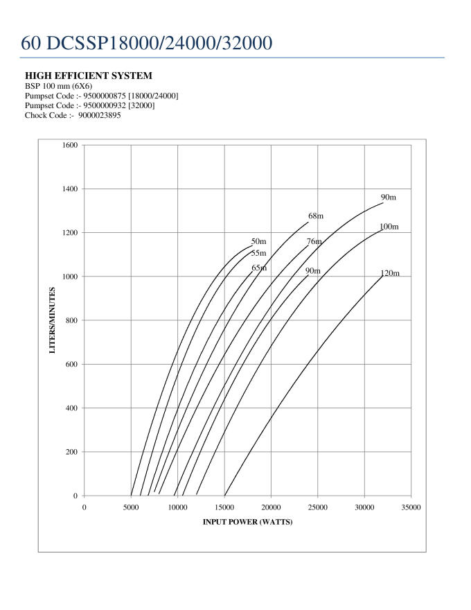 (A) Input Power (Watt) [hidden] [hidden] [hidden] [hidden] [hidden] [hidden] 18000 16000 14000 12000 8000 6500 5500 Head (m) Flow in LPM [hidden] [hidden] [hidden] [hidden] [hidden] [hidden] 65 1000 910 870 540 0 55 1150 1050 890 800 430 0 50 1165 1080 950 840 470 300 0 (B) Input Power (Watt) [hidden] [hidden] [hidden] [hidden] [hidden] [hidden] 24000 22000 20000 16000 10500 8000 7500 Head (m) Flow in LPM [hidden] [hidden] [hidden] [hidden] [hidden] [hidden] 90 1000 930 800 520 0 76 1150 1060 950 720 315 0 68 1240 1200 1080 800 400 130 0 (C) Input Power (Watt) [hidden] [hidden] [hidden] [hidden] [hidden] [hidden] 32000 28000 24000 20000 15000 12000 10000 Head (m) Flow in LPM [hidden] [hidden] [hidden] [hidden] [hidden] [hidden] 120 1000 830 600 350 0 100 1220 1070 830 680 360 0 90 1360 1200 1090 860 530 250 0 2 year warranty
