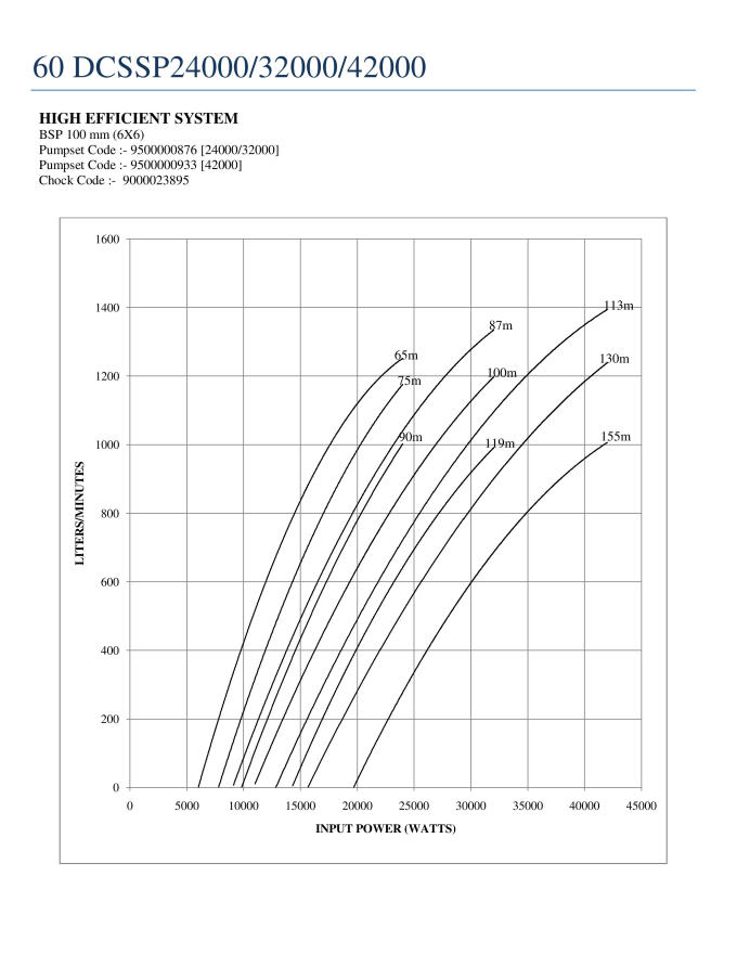 (A) Input Power (Watt) [hidden] [hidden] [hidden] [hidden] [hidden] [hidden] 24000 22000 20000 18000 9800 7800 6300 Head (m) Flow in LPM [hidden] [hidden] [hidden] [hidden] [hidden] [hidden] 90 1000 902 775 650 0 75 1180 1085 980 870 265 0 65 1260 1200 1110 1012 410 240 0 (B) Input Power (Watt) [hidden] [hidden] [hidden] [hidden] [hidden] [hidden] 32000 28000 24000 20000 14300 11000 9100 Head (m) Flow in LPM [hidden] [hidden] [hidden] [hidden] [hidden] [hidden] 119 1000 820 645 420 0 100 1205 1040 860 640 280 0 87 1340 1205 1035 832 480 210 0 (C) Input Power (Watt) [hidden] [hidden] [hidden] [hidden] [hidden] [hidden] 42000 38000 30000 26000 19600 15800 13000 Head (m) Flow in LPM [hidden] [hidden] [hidden] [hidden] [hidden] [hidden] 155 1000 915 602 380 0 130 1245 1120 790 640 290 0 113 1400 1290 1020 810 480 225 0 2 year warranty