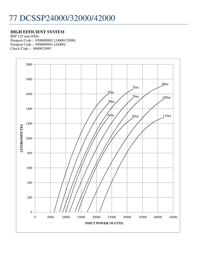 (A) Input Power (Watt) [hidden] [hidden] [hidden] [hidden] [hidden] [hidden] 24000 22000 20000 18000 10000 8000 6500 Head (m) Flow in LPM [hidden] [hidden] [hidden] [hidden] [hidden] [hidden] 68 1283 1200 1010 900 0 58 1490 1380 1230 1150 460 0 50 1630 1540 1400 1290 600 380 0 (B) Input Power (Watt) [hidden] [hidden] [hidden] [hidden] [hidden] [hidden] 32000 28000 24000 20000 14000 11500 9500 Head (m) Flow in LPM [hidden] [hidden] [hidden] [hidden] [hidden] [hidden] 89 1283 1130 900 640 0 76 1572 1360 1100 900 450 0 66 1700 1512 1350 1060 680 400 0 (C) Input Power (Watt) [hidden] [hidden] [hidden] [hidden] [hidden] [hidden] 42000 38000 30000 26000 21000 17000 14000 Head (m) Flow in LPM [hidden] [hidden] [hidden] [hidden] [hidden] [hidden] 116 1283 1100 800 520 0 100 1560 1365 1000 800 490 0 88 1750 1570 1210 1020 720 450 0 2 year warranty