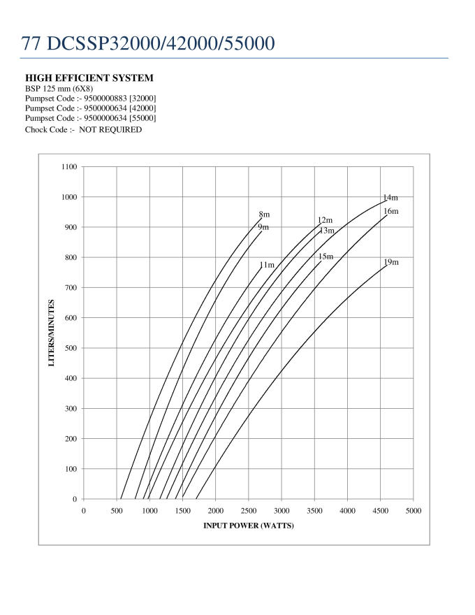(A) Input Power (Watt) [hidden] [hidden] [hidden] [hidden] [hidden] [hidden] 32000 28000 24000 20000 13500 10500 8500 Head (m) Flow in LPM [hidden] [hidden] [hidden] [hidden] [hidden] [hidden] 90 1283 1110 910 680 0 76 1520 1310 1120 900 400 0 66 1650 1480 1330 1060 630 310 0 (B) Input Power (Watt) [hidden] [hidden] [hidden] [hidden] [hidden] [hidden] 42000 38000 30000 26000 18500 15000 12500 Head (m) Flow in LPM [hidden] [hidden] [hidden] [hidden] [hidden] [hidden] 116 1283 1130 820 620 0 100 1550 1400 1020 870 400 0 88 1685 1550 1250 1032 605 305 0 (C) Input Power (Watt) [hidden] [hidden] [hidden] [hidden] [hidden] [hidden] 55000 48000 42000 30000 26500 21000 17000 Head (m) Flow in LPM [hidden] [hidden] [hidden] [hidden] [hidden] [hidden] 150 1283 1132 900 200 0 126 1560 1366 1140 700 500 0 110 1795 1600 1370 900 740 600 0 2 year warranty