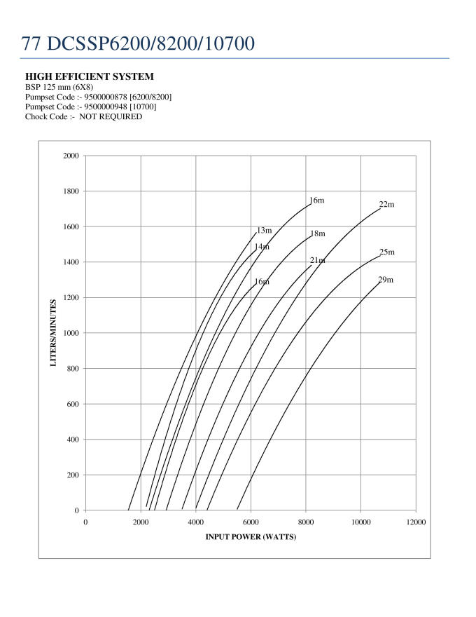 (A) Input Power (Watt) [hidden] [hidden] [hidden] [hidden] [hidden] [hidden] 6200 5300 4600 3900 2500 2200 2000 Head (m) Flow in LPM [hidden] [hidden] [hidden] [hidden] [hidden] [hidden] 16 1285 1090 938 661 0 14 1493 1260 1101 901 410 0 13 1566 1365 1180 908 490 340 0 (B) Input Power (Watt) [hidden] [hidden] [hidden] [hidden] [hidden] [hidden] 8200 7200 6200 5200 3500 2900 2500 Head (m) Flow in LPM [hidden] [hidden] [hidden] [hidden] [hidden] [hidden] 21 1285 1120 938 710 0 18 1565 1353 1150 934 451 0 16 1759 1525 1291 1101 591 290 0 (C) Input Power (Watt) [hidden] [hidden] [hidden] [hidden] [hidden] [hidden] 10700 9500 8500 6500 5500 4400 4000 Head (m) Flow in LPM [hidden] [hidden] [hidden] [hidden] [hidden] [hidden] 29 1285 1100 860 420 0 25 1458 1286 1147 739 513 0 22 1714 1480 1333 920 689 181 0 2 year warranty