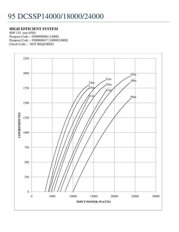 (A) Input Power (Watt) [hidden] [hidden] [hidden] [hidden] [hidden] [hidden] 14000 12000 10000 8000 5600 4200 3600 Head (m) Flow in LPM [hidden] [hidden] [hidden] [hidden] [hidden] [hidden] 31 1583 1345 1150 736 0 27 1790 1541 1344 1017 575 0 24 1809 1640 1440 1169 696 365 0 (B) Input Power (Watt) [hidden] [hidden] [hidden] [hidden] [hidden] [hidden] 18000 16000 14000 12000 6600 5400 4000 Head (m) Flow in LPM [hidden] [hidden] [hidden] [hidden] [hidden] [hidden] 41 1583 1430 1250 960 0 35 1824 1660 1467 1275 383 0 31 1915 1767 1650 1400 590 301 0 (C) Input Power (Watt) [hidden] [hidden] [hidden] [hidden] [hidden] [hidden] 24000 22000 20000 18000 10000 8100 6900 Head (m) Flow in LPM [hidden] [hidden] [hidden] [hidden] [hidden] [hidden] 56 1583 1423 1245 1070 0 48 1845 1745 1567 1370 436 0 43 1987 1850 1749 1577 630 281 0 2 year warranty