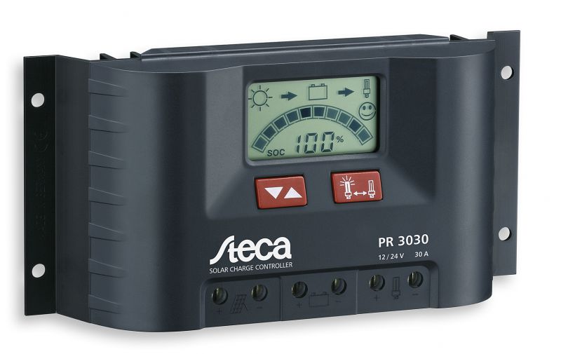 The Steca PR 10-30 series of charge controllers is the highlight in the range. Use of the latest charging technologies combined with state of charge determination enable optimal battery maintenance and module power monitoring. A large display informs the user about all operating modes with the aid of symbols. The state of charge is represented visually in the form of a level meter. Data such as voltage, current and state of charge can also be displayed digitally as figures on the display. In addition, the controller has an energy meter which can be reset by the user.