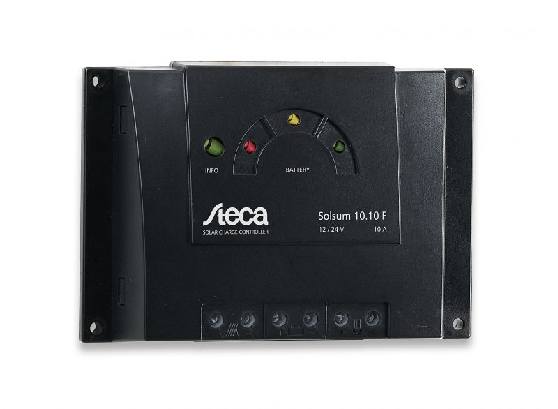 The circuit board is completely electronically protected and with the LED user interface it is easy to check the battery state of charge at any time. Large terminals guarantee a simple connection of solar panels, battery and load. The Steca Solsum F works on PWM as a low loss series controller.