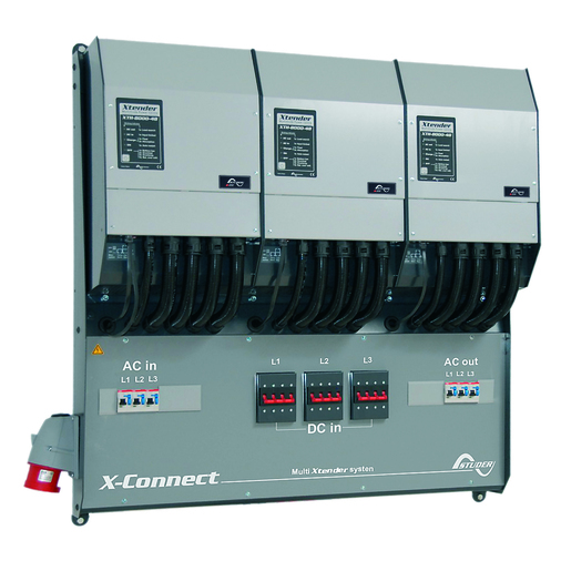 The pre-wired mounting offers a flexible and cost effective solution for high power systems (up to 63 kVA) based on the XTH inverter/charger.